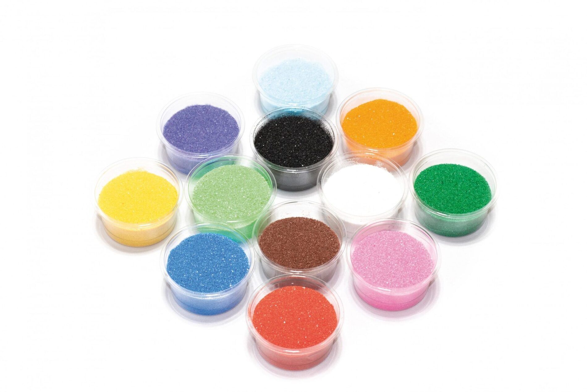 Maak de mooiste schilderijen met dit decoratieve zand in 12 verschillende kleuren. te combineren met het zand schilderij.