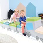 Deze unieke trein bestaat uit 4 poef-wagons en een locomotief. De kinderen vinden het prachtig en het is een echte eye-catcher in de kidneropvang