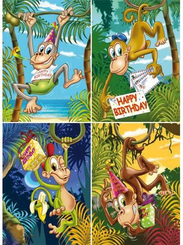 Beschrijving Grote kaarten serie 921 – Verjaardagskaart met apen