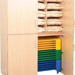 Deze opbergkast is een functionele meubel voor zowel 15-sets beddengoed als 15 rustbedden. Er zijn vakken voor beddengoed in het bovenste gedeelte en een plek voor rustbedjes in het onderste gedeelte.