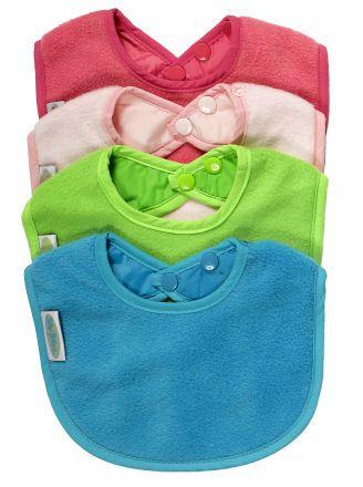 Alle Silly Billyz slabbetjes hebben een fleece katoenen voorkant en een ademende nylon achterkant.