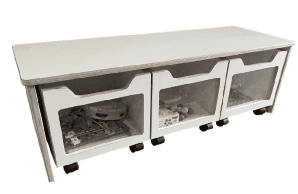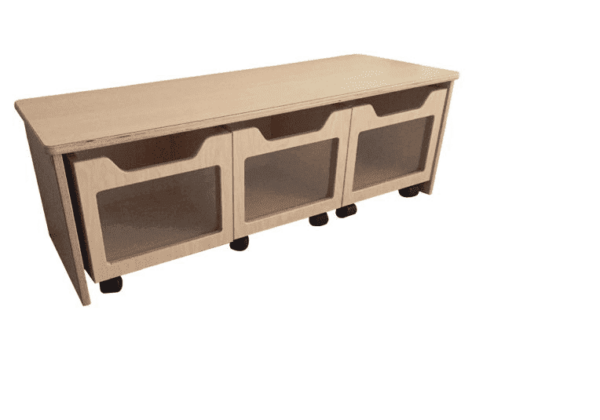 Opbergbank met 3 rolbakken 120 cm – Berken foto 1