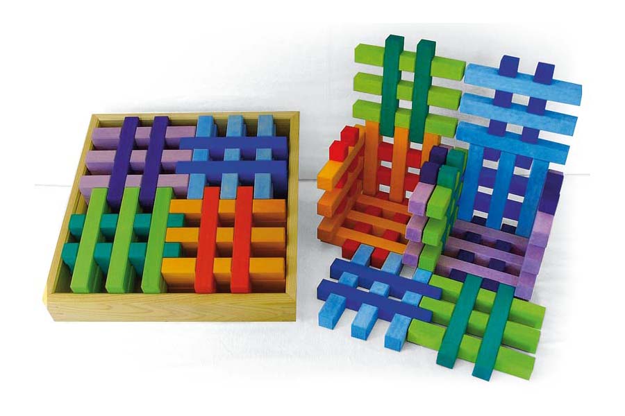 - De kleurrijke roosterblokken zijn er in 4 verschillende kleuren = elk 3 stuks.