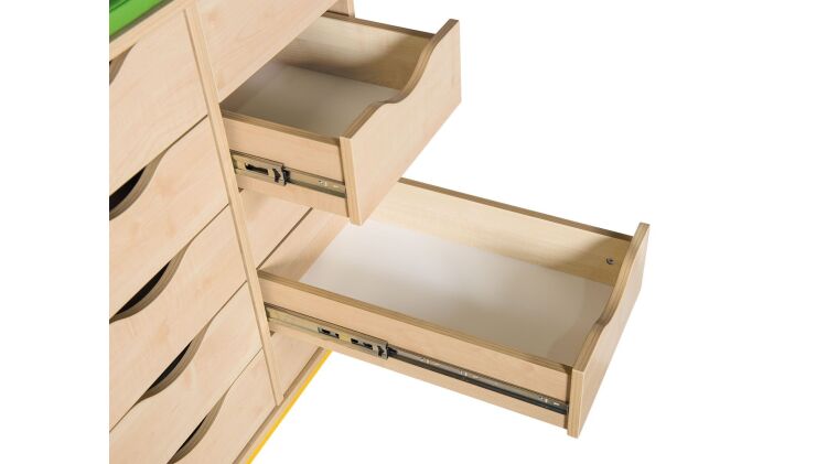 De hele commode is gemaakt van esdoorn spaanplaat.