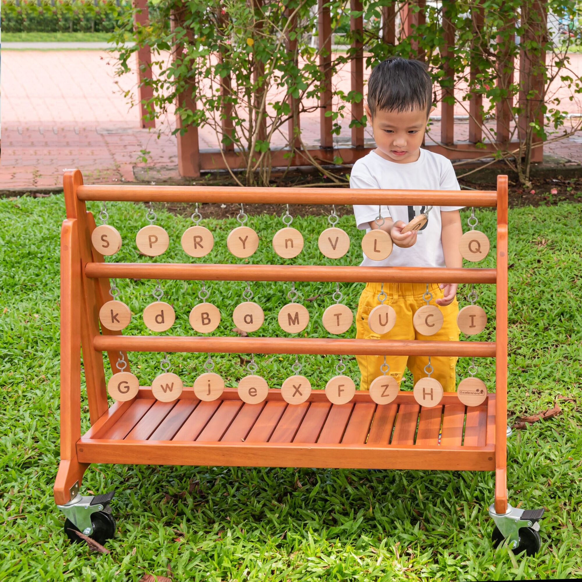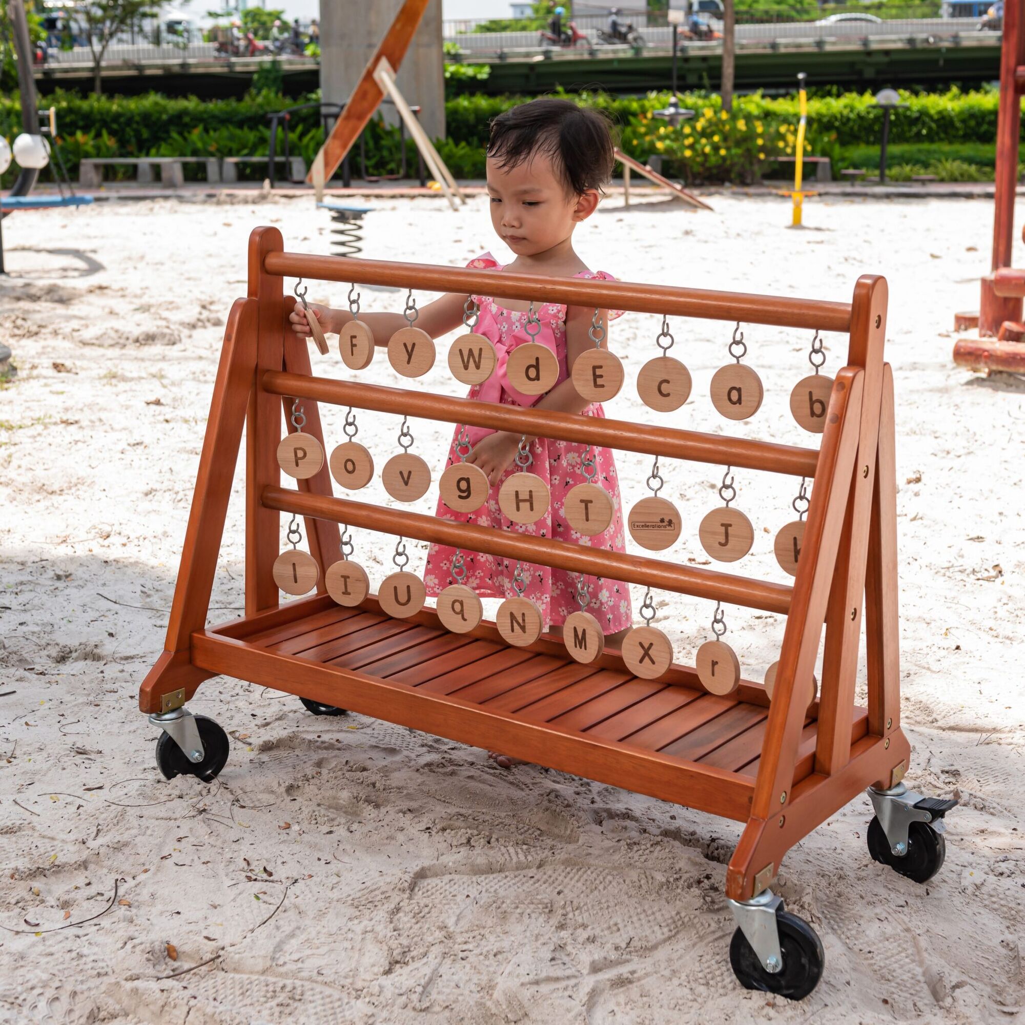 Dit verrijdbare Letters Station maakt leren buiten nóg leuker! Met 26 ophangbare letters (Ø 6,5 cm) stimuleert het spelenderwijs taalontwikkeling, letterherkenning en woordvorming. Perfect voor buitenonderwijs, BSO en speelse leeromgevingen.