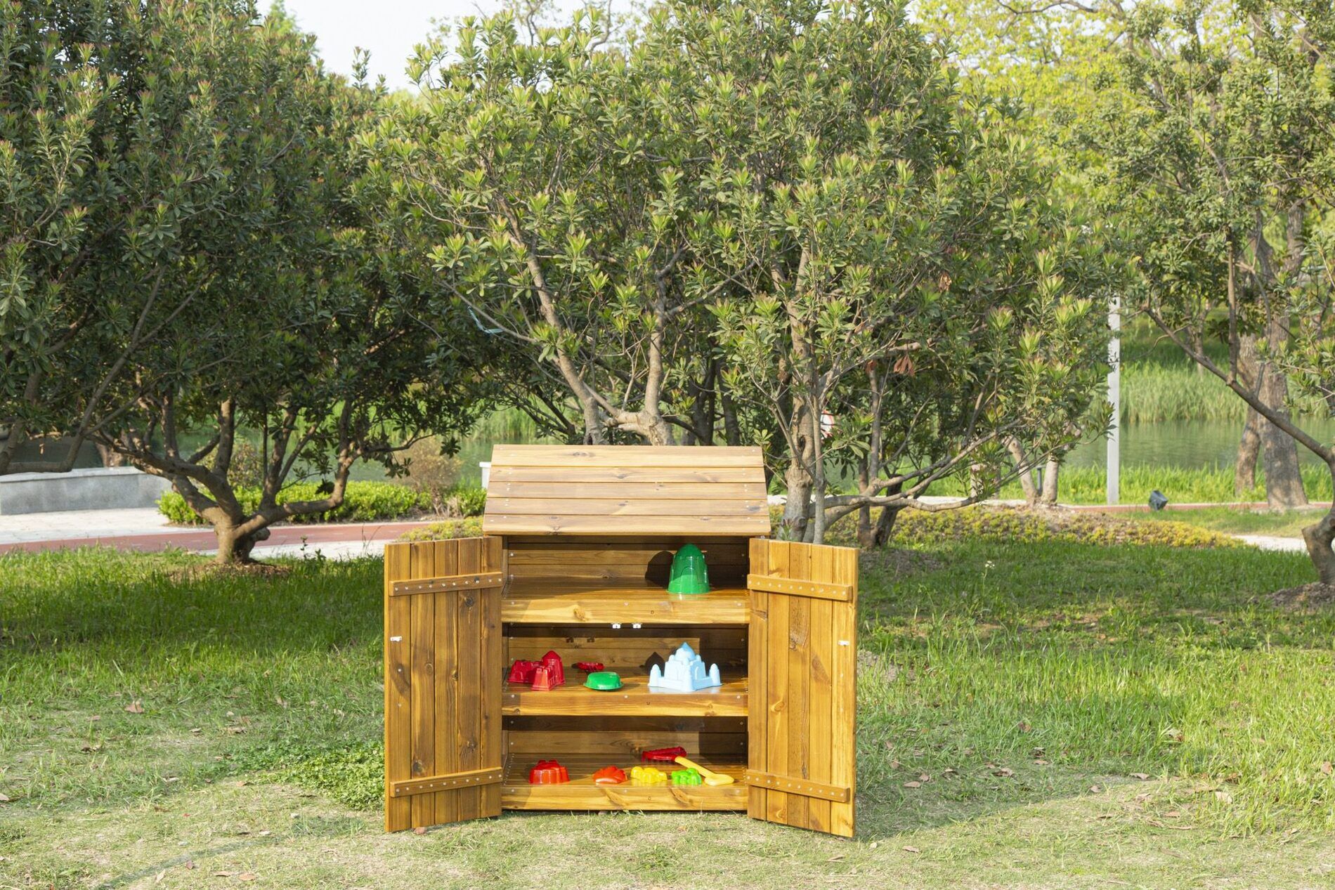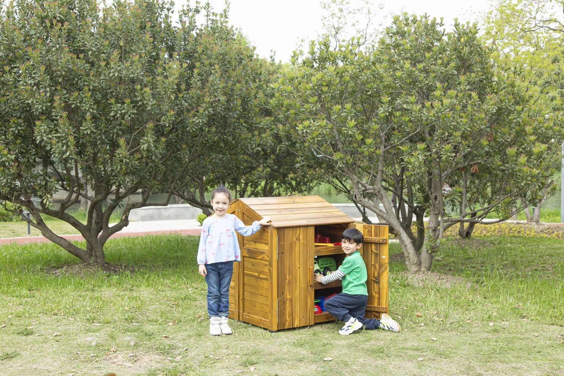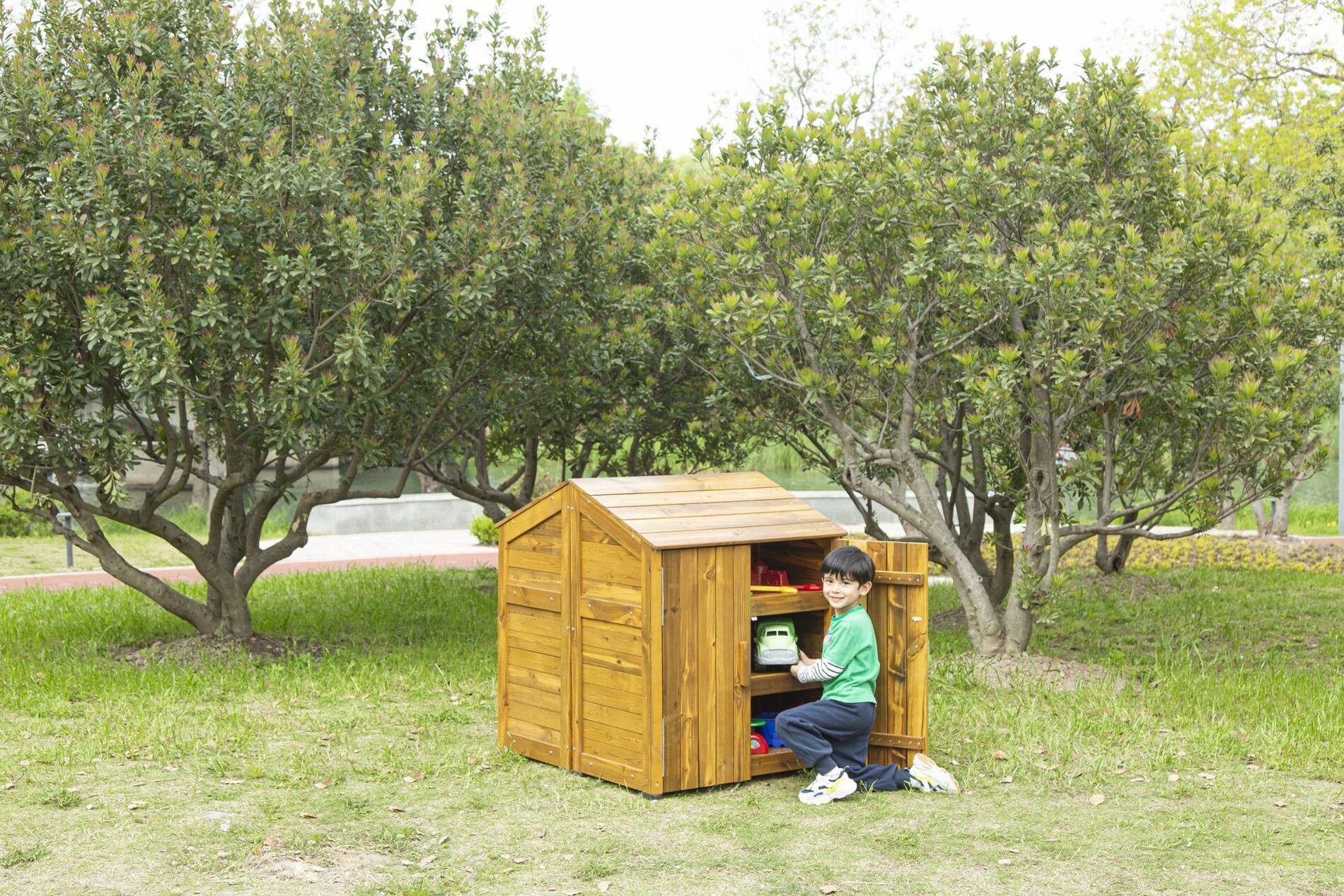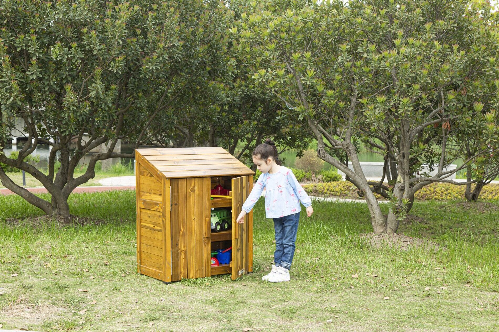 Deze opbergkast is de perfecte oplossing om speelgoed, materialen en benodigdheden veilig en georganiseerd op te bergen. Dankzij het schuine dak en de hoogwaardige materialen is deze kast robuust genoeg om bestand te zijn tegen de weersomstandigheden buiten.