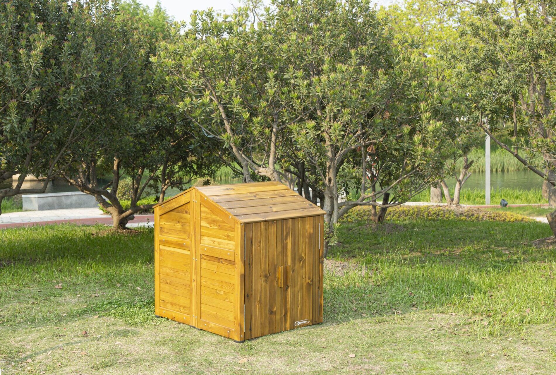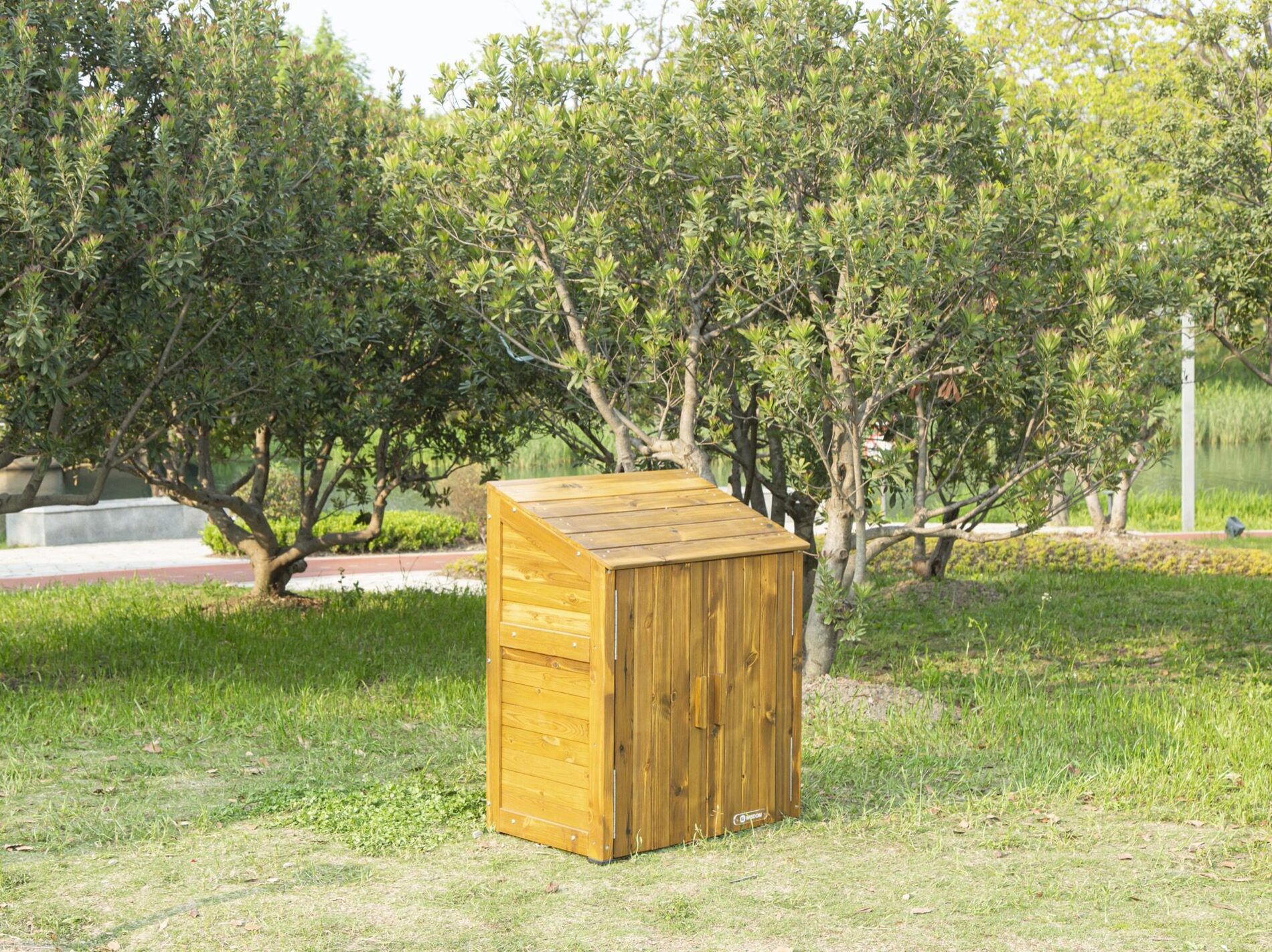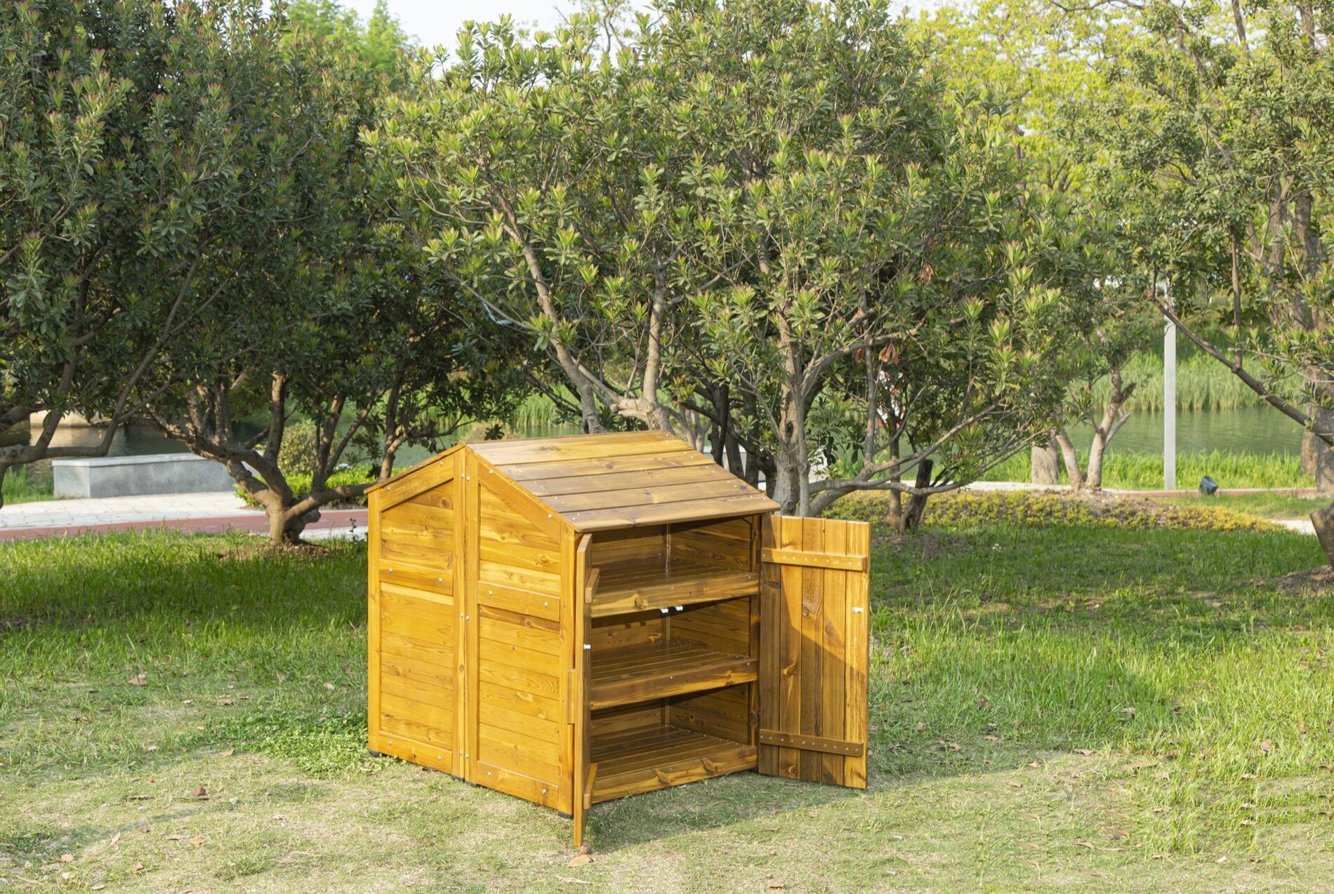 De vakken bieden voldoende ruimte voor een verscheidenheid aan items en zorgen voor eenvoudige organisatie. Met twee deuren is de kast gemakkelijk te openen en te sluiten, waardoor de toegang tot de items wordt vergemakkelijkt en de veiligheid wordt gegarandeerd. Deze kast is praktisch en aantrekkelijk ontworpen. Met zijn natuurlijke houtkleur en zorgvuldige afwerking is deze kast een blikvanger en past hij naadloos in elke buitenomgeving.