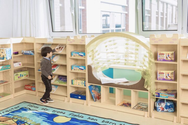 - met opbergruimte voor boeken en speelgoed