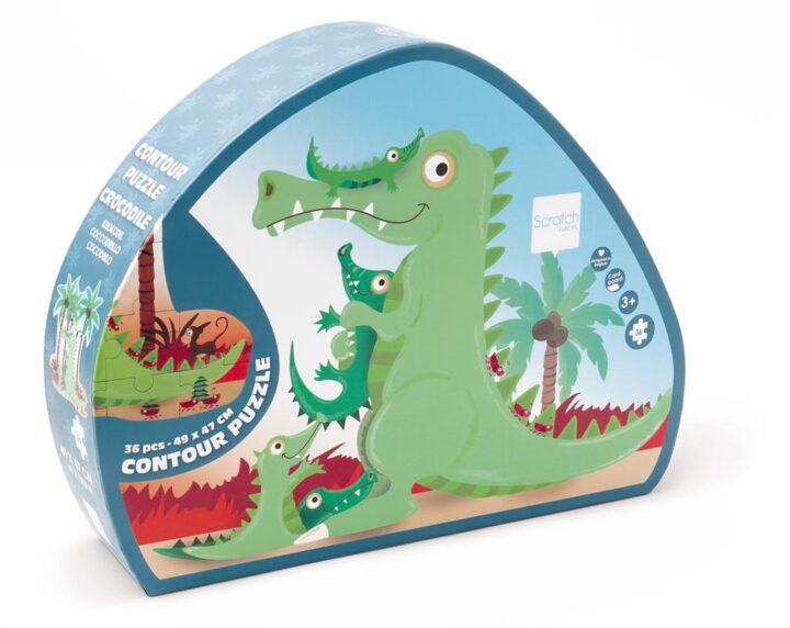 Leg 36 stukjes om een zoet plaatje te maken van een krokodillenmoeder met haar baby’s. De puzzel heeft een interessante vorm en komt in een mooie, stevige, gevormde doos. Perfect voor kinderen die liever een andere uitdaging hebben dan traditionele puzzels.