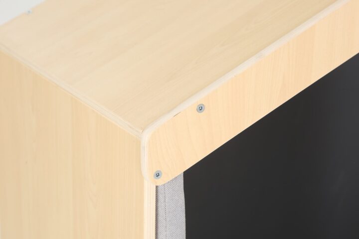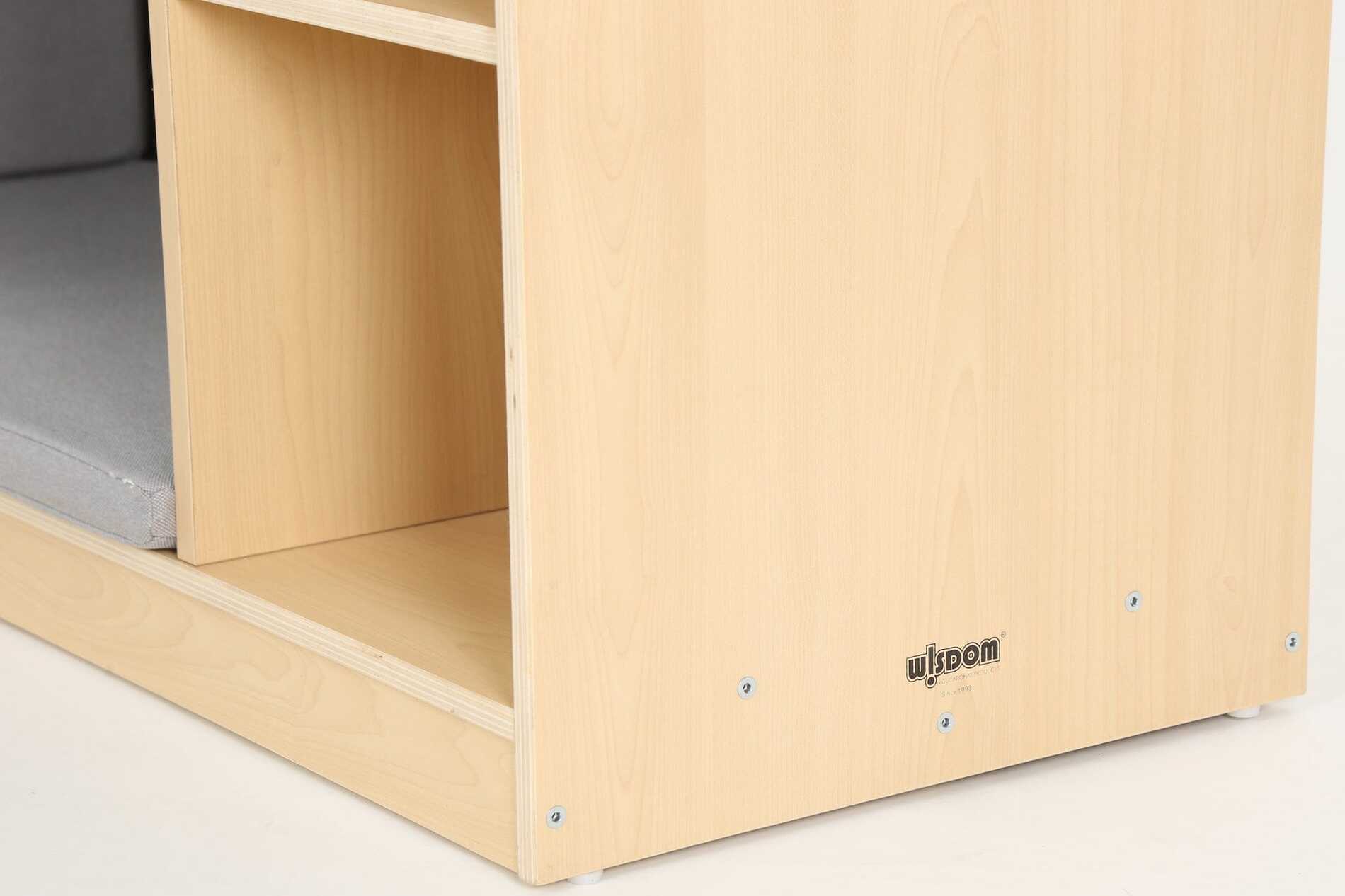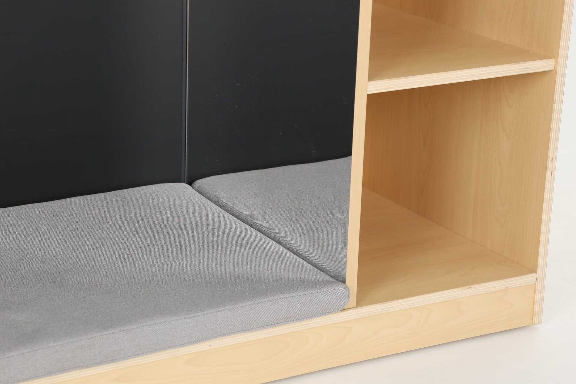 - zitting met schuimvulling, hoes van textielstof. Extra afgeronde hoeken van hout voor de veiligheid van de kinderen