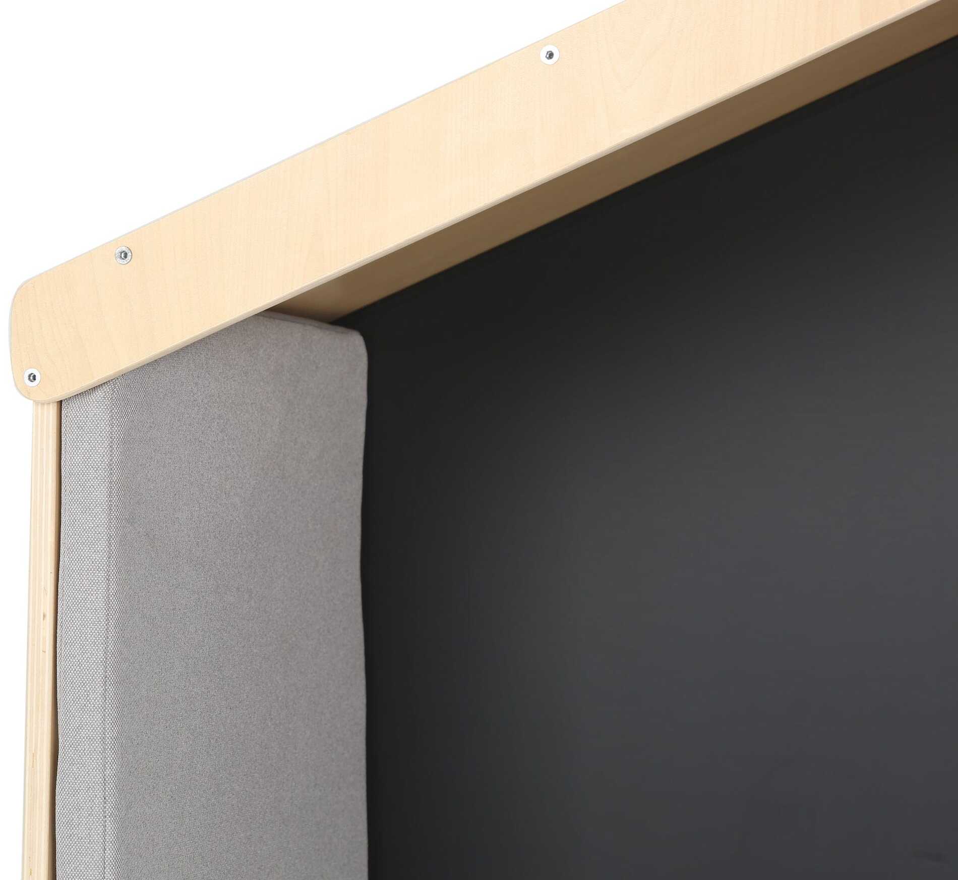 - Materiaal: berken multiplex, melamine coating, decor: esdoorn, krijtbord, spiegel in esdoorn-look,