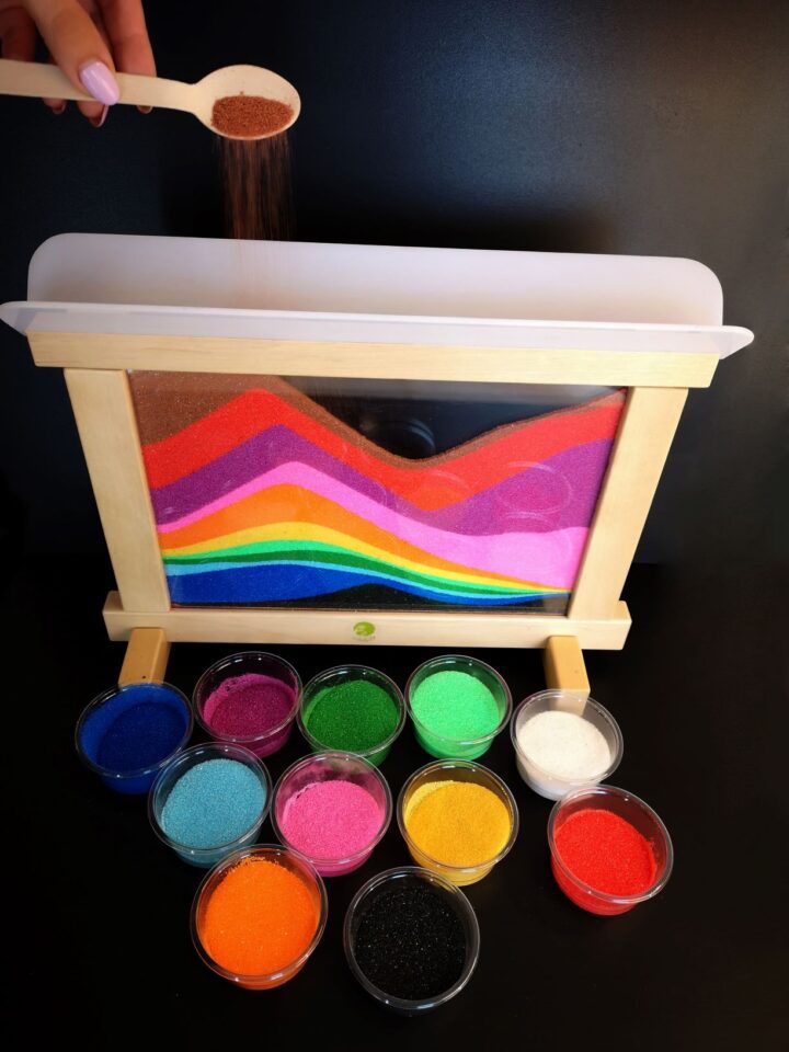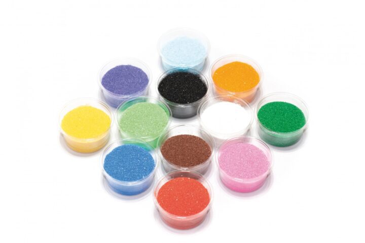 Maak de mooiste schilderijen met dit decoratieve zand in 12 verschillende kleuren. te combineren met het zand schilderij.