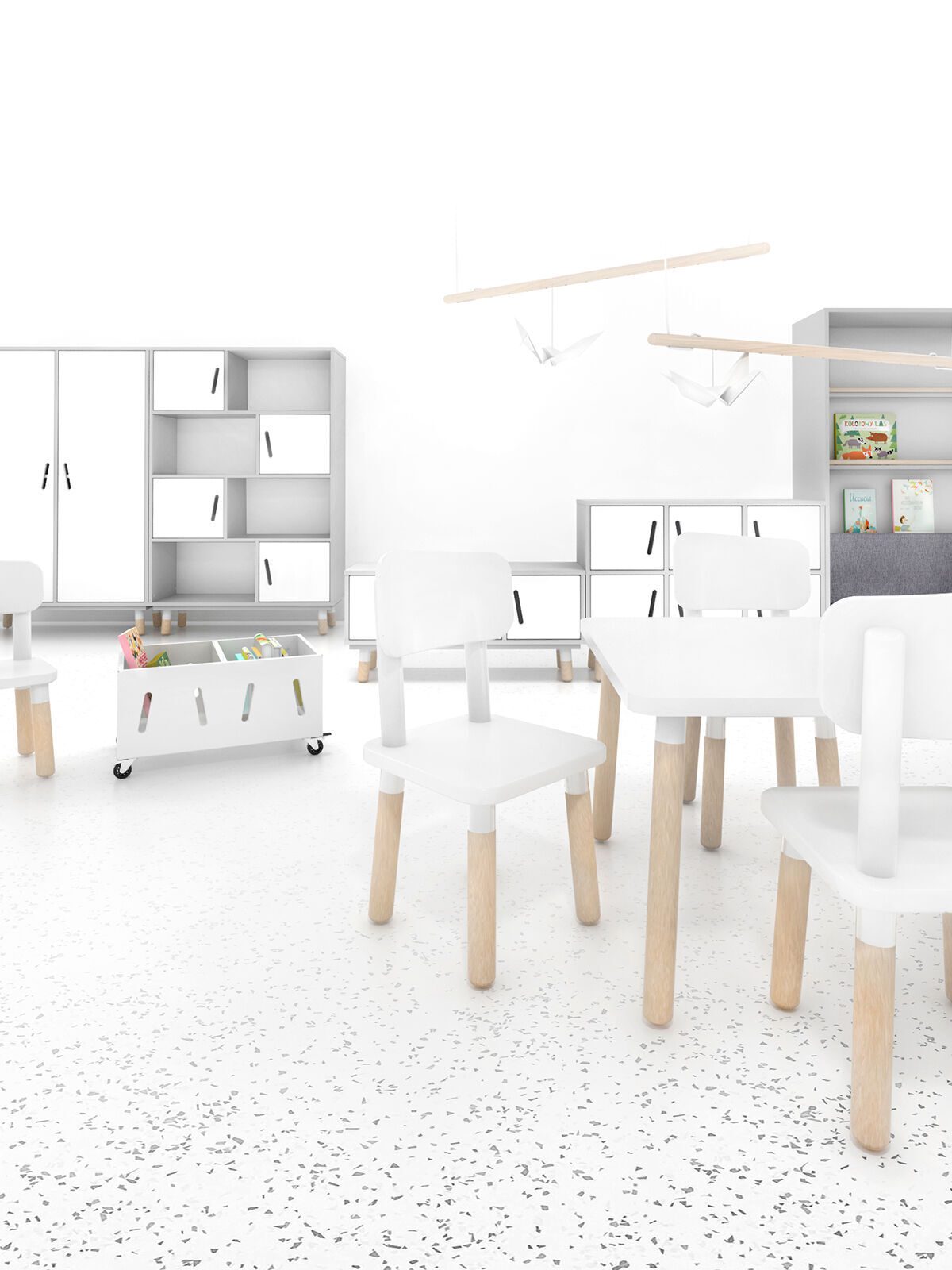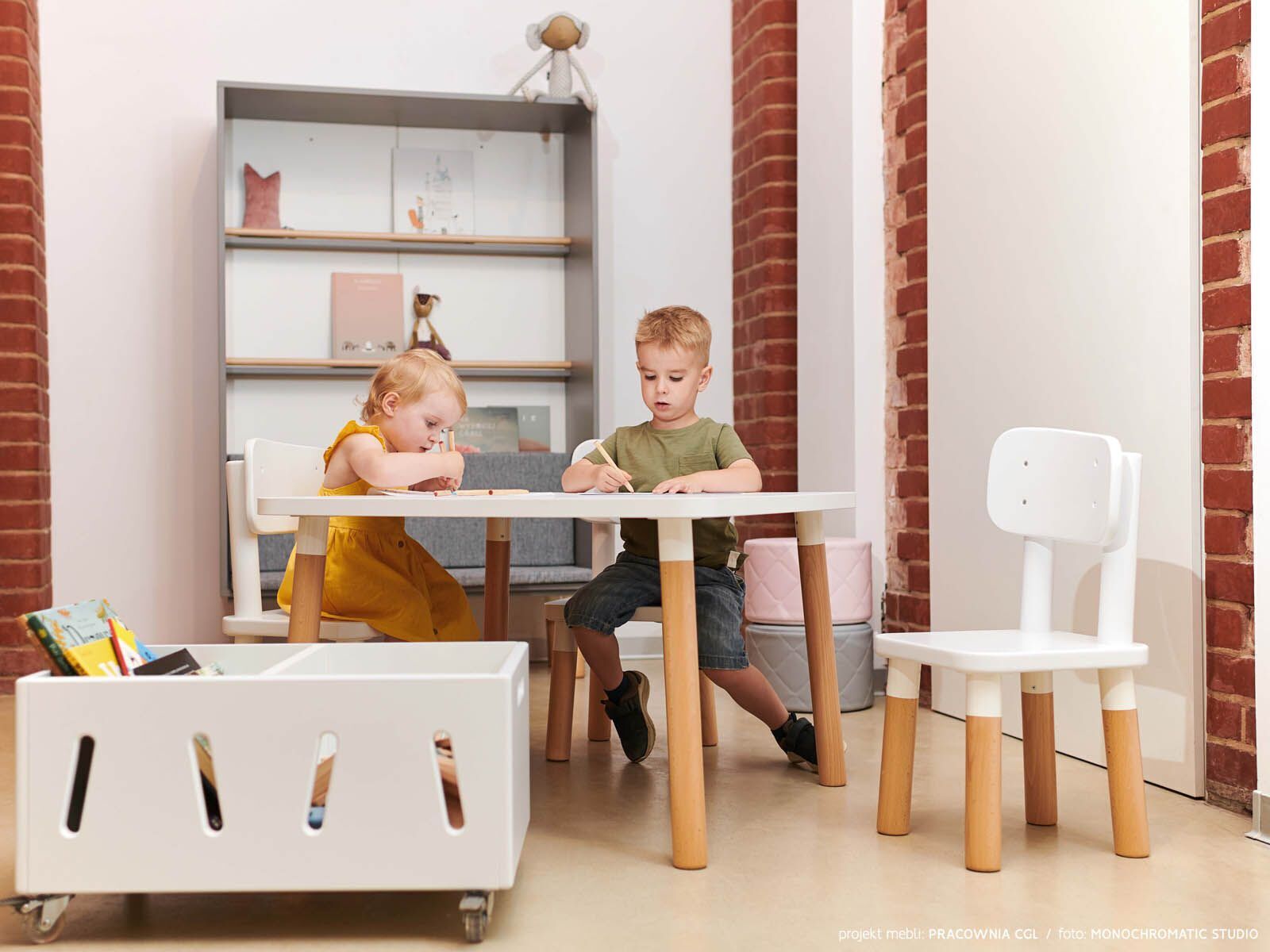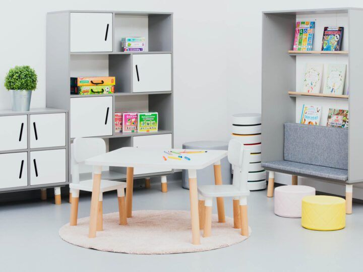 Deze kindertafel van houten poten met wit tafelblad is een must in de moderne kinderopvang en peuterspeelzaal.