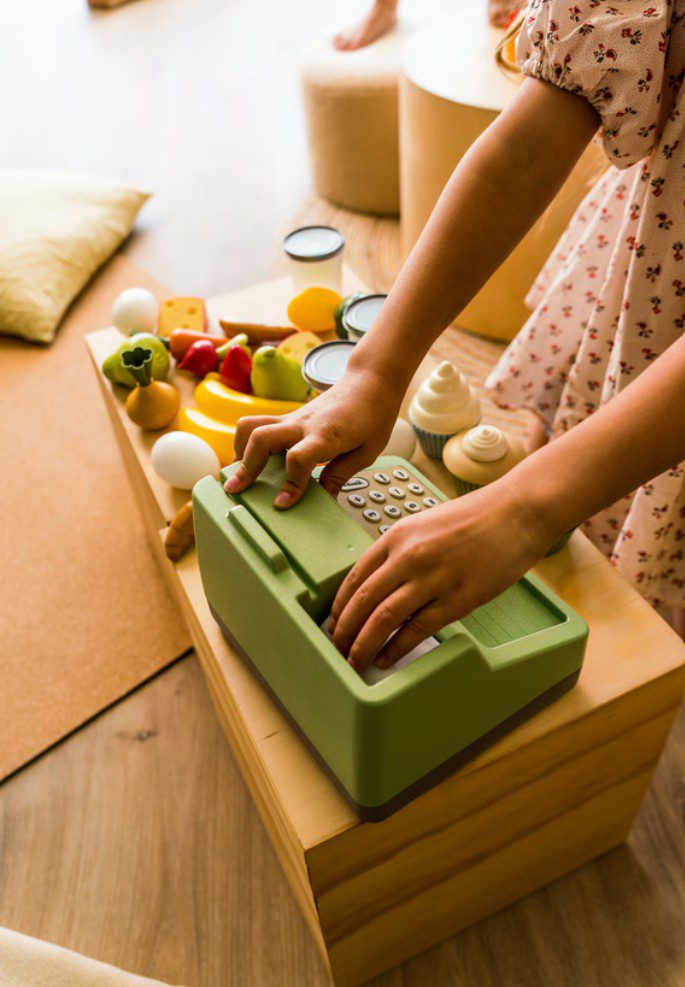 Deze charmante kassaset van Green Garden bestaat uit 8 onderdelen die samen een fantasierijke winkel- en handelsspeelervaring creëren. De set is perfect om het rollenspel van kinderen te stimuleren en hun begrip van cijfers, geld en sociale interacties te ontwikkelen door middel van leuk en boeiend spel.