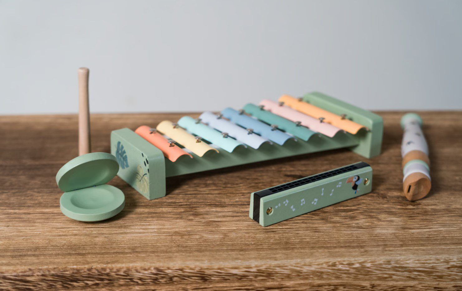 Elke set is zorgvuldig ontworpen om jonge muzikanten kennis te laten maken met de wereld van ritme en melodie. Met een kleurrijke xylofoon als middelpunt, aangevuld met andere zorgvuldig gekozen instrumenten, krijgen kinderen de kans om verschillende klanken te ontdekken en hun eigen muziek te creëren. De pastelachtige kleuren en de natuurlijke houtafwerking maken de instrumenten visueel aantrekkelijk en uitnodigend voor kleine handjes.