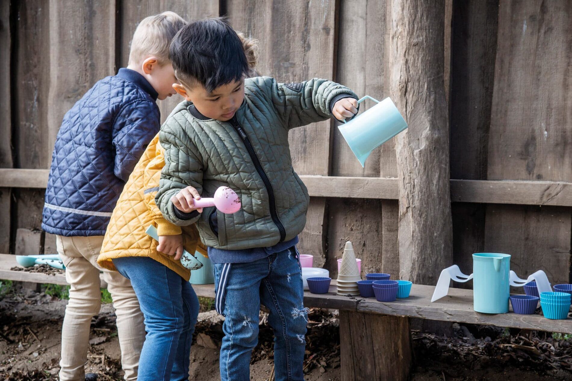 Er zijn talloze manieren om mooie, creatieve zand- en moddertaarten te maken met deze goed gesorteerde set waarmee veel kinderen tegelijk kunnen spelen. Buiten spelen met zand en water stimuleert de motoriek en de zintuigen van het kind. De set kan ook binnenshuis worden gebruikt en is goedgekeurd voor contact met voedsel. Hij is gemakkelijk schoon te maken in de vaatwasser.
