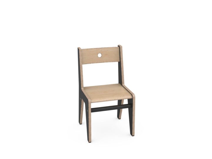 Een prachtig en zeer robuust stoeltje van de Davi collectie in drie verschillende maten en 2 kleurvarianten. De zijkanten van de stoel zijn gemaakt van watervast melamine multiplex (15 mm), terwijl de zitting en rugleuning zijn gemaakt van berkenmultiplex. De rugleuningen hebben een karakteristiek rond gat.