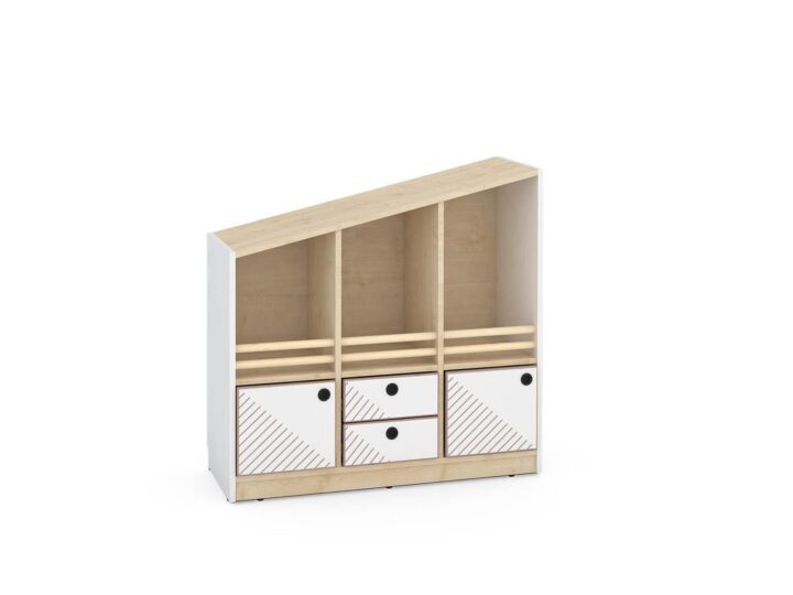 Prachtige moderne opbergkastjes in huisjesvorm. verkrijgbaar in twee hoogtes en twee types (links of rechts). Deze kast is inclusief twee witte deurtjes, en twee lades.