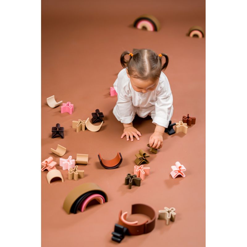 De gebruiksmogelijkheden zijn afhankelijk van de plaats, context en individuele behoeften van ieder kind en blijven voor altijd boeien. Zo is het een bijtspeelgoed, constructiespeelgoed, decoratie maar kan het ook helpen de kleuren te leren benoemen en mag het gewoon mee in bad.