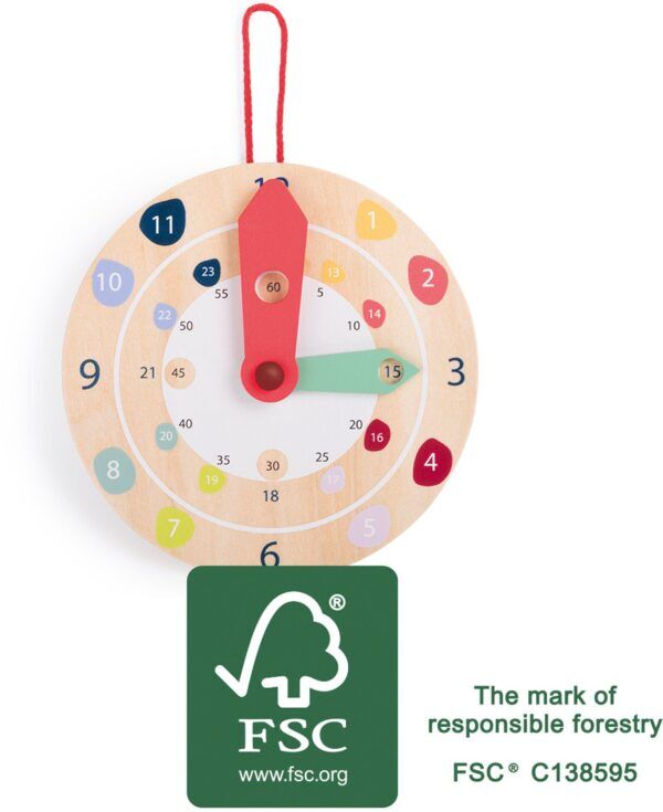 Deze leerklok helpt kinderen de relatie tussen analoge en digitale tijdweergave te begrijpen. Elke tijd kan worden ingesteld met een druk op de knop, waarbij beide klokken gelijk lopen. De analoge klok heeft dag/nacht- en minuutaanduidingen, de digitale klok kan worden ingesteld op 12- of 24-uurs formaat. De leerklok kan op tafel worden gezet of aan de muur worden gehangen.