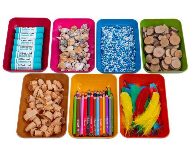 De materiaalbakken kunnen worden gebruikt in scholen, kinderdagverblijven, op kantoor of thuis. Handwerkmateriaal, pennen, scharen of zelfs vloeistoffen zoals inkt en pasta kunnen in de schaal worden gevuld. Sorteerschalen naast elkaar en rechtstreeks naar de kindertafels worden verdeeld. De kommen kunnen eenvoudig met de hand worden schoongemaakt. De schalen zijn stapelbaar en ideaal geschikt voor een organisatiesysteem. Laat de hoge veerkracht je overtuigen. De materiaalbakken zijn probleemloos bestand tegen elke wilde dag op school, kinderdagverblijf en op kantoor. Kies uit in totaal 8 felle kleuren.