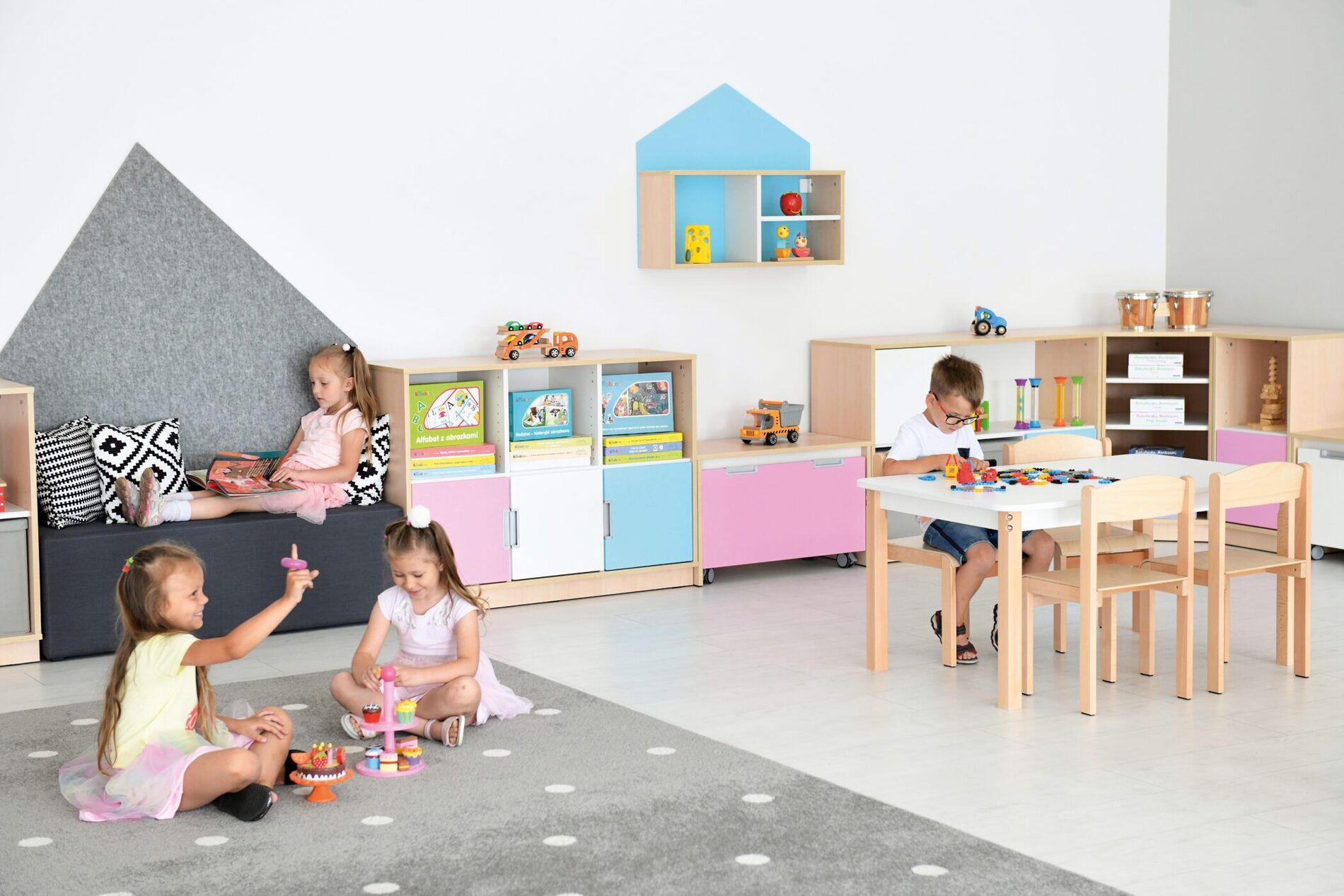 Huisvormige decoraties gemaakt van PET-materiaal. Ontworpen voor het tentoonstellen van bijvoorbeeld artistieke werken.