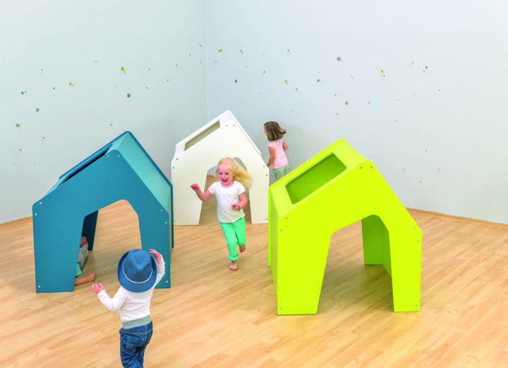 Het huis is aan twee zijden toegankelijk en heeft een groot dakraam waardoor veel licht binnenvalt in het huis. De kinderen kunnen door de huizen kruipen en ontdekken zo hun eigen speelwerelden.