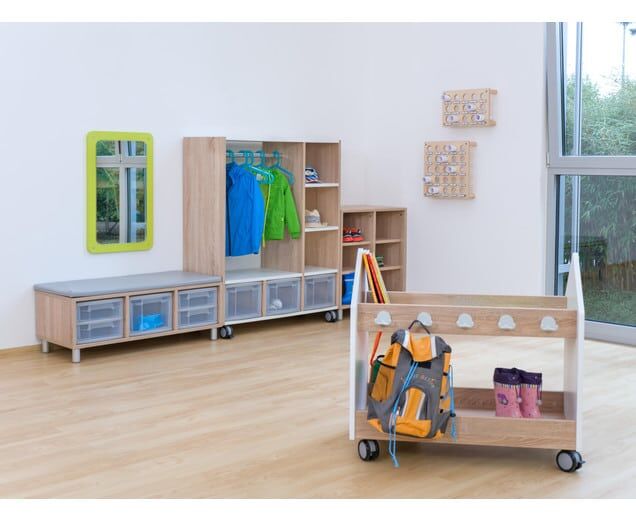 Veel opbergruimte en ruimte voor jassen biedt deze garderobe. De 4 wielen zijn vergrendelbaar, zodat de kledingkast een stabiele grip heeft. De flexibele kast kan eenvoudig en snel worden verplaatst, waardoor het een geweldige manier is om kamers snel en eenvoudig opnieuw in te richten. De kapstok is aan twee zijden te gebruiken. Aan de ene kant is een boogglazen spiegel verwerkt, aan de andere kant bieden compartimenten ruimte voor tassen, sjaals en meer.