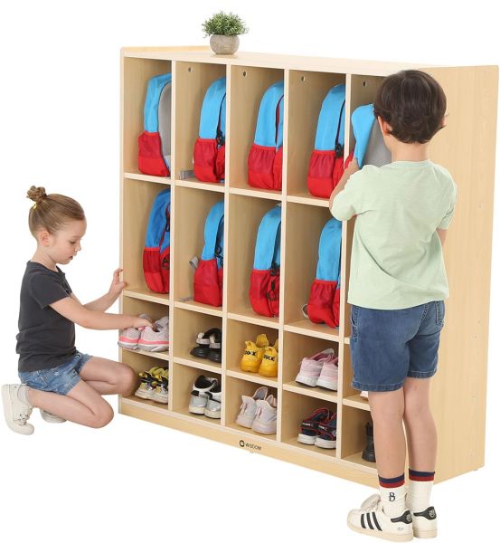 Het rugzakvak is ruim bemeten (H37 x B22 x D38 cm), zodat de rugzakken van de kinderen er comfortabel in passen en ze hun persoonlijke spullen gemakkelijk kunnen terugvinden.