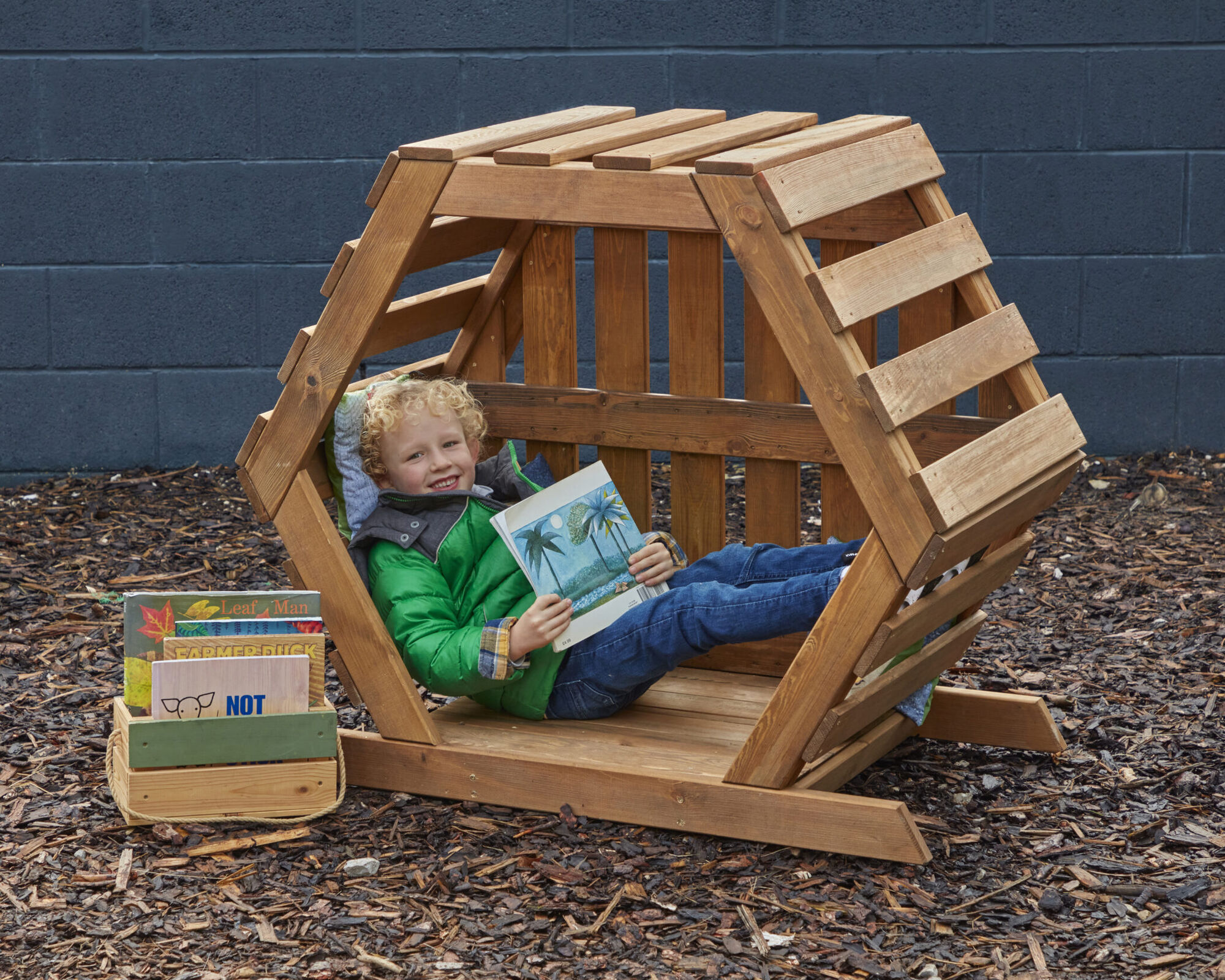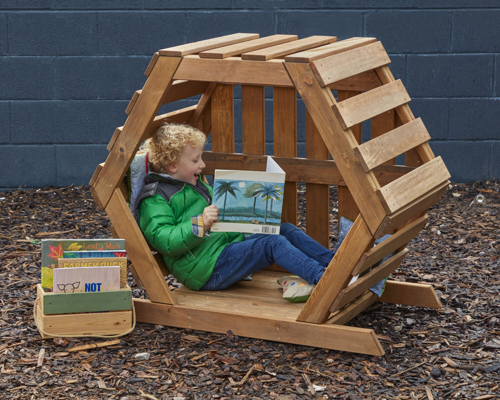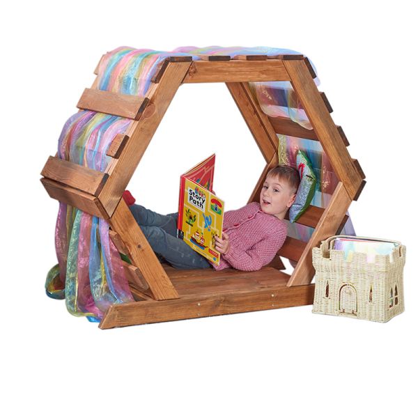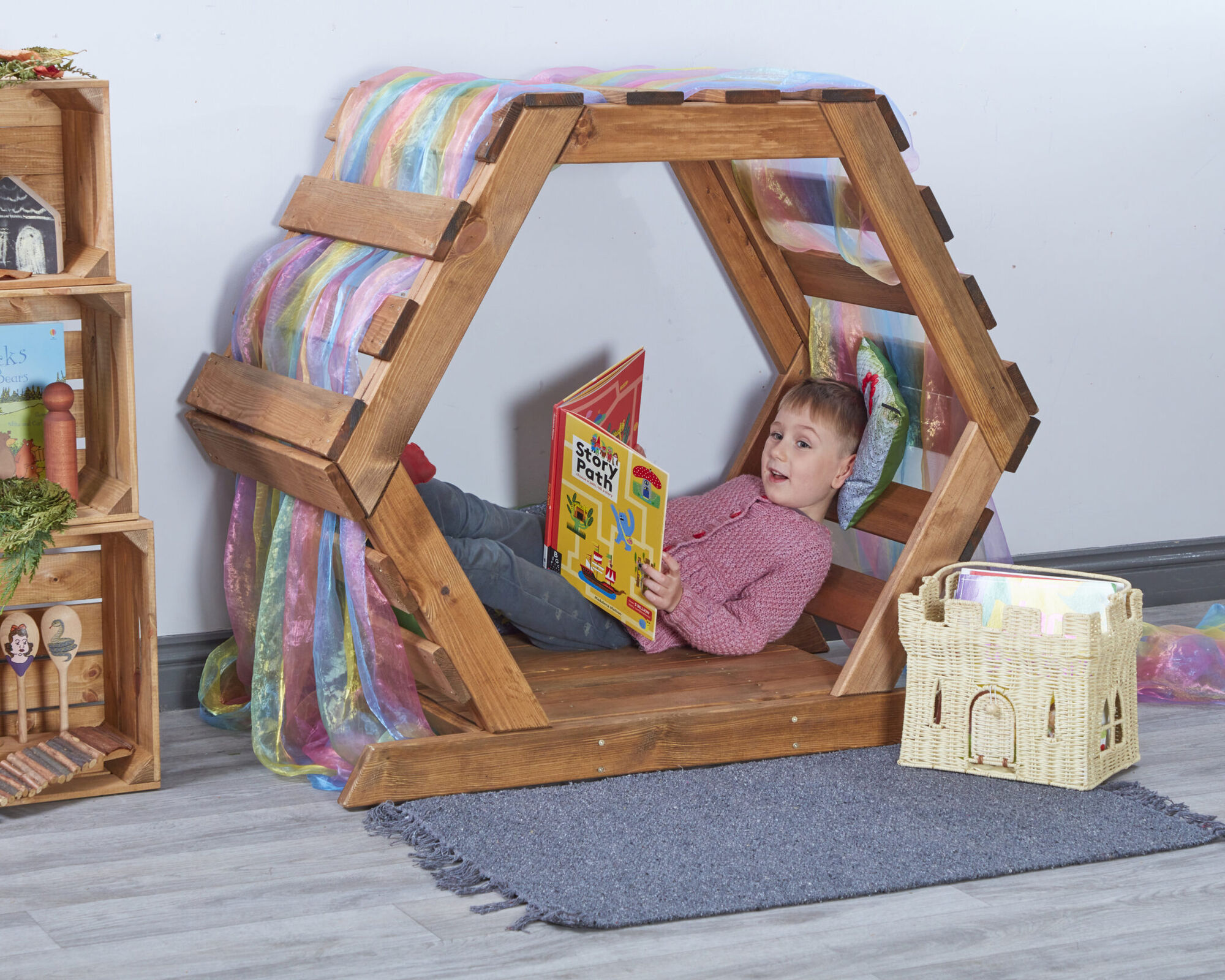 Welkom bij de Gezellige Bijenkorf – de perfecte plek voor kinderen om even tot rust te komen in hun vroege leeromgeving! Deze charmante zeshoekige structuur is een oase van rust, ontworpen om jonge leerlingen een comfortabele ruimte te bieden waar ze kunnen ontspannen, een boek lezen of rustig praten met een vriendje. Voeg enkele van onze buiten leeskussens toe om de sfeer nog uitnodigender te maken!