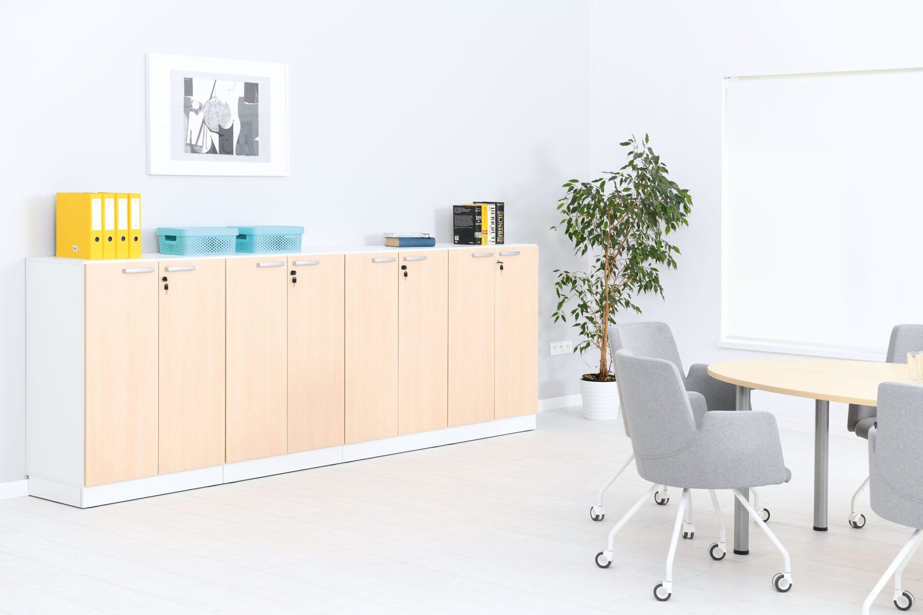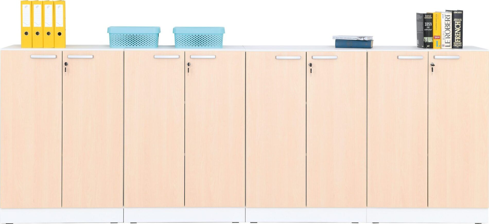 De ideale kastencombinatie voor een hele muur aan opbergruimte. 4 gelijke kasten zorgen voor eenheid en rust in de ruimte. Bovendien is het een budgetvriendelijke optie die alleen wat inspanning vereist.