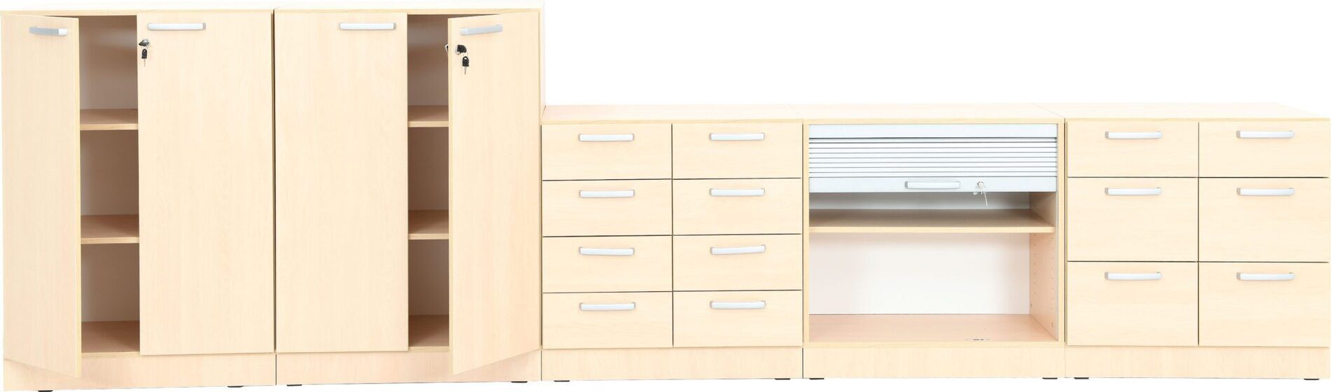 De ideale kastencombinatie voor een hele muur aan opbergruimte. Met zowel laden als deuren heb je een diversiteit aan opties om alles netjes op te ruimen. Bovendien is het een budgetvriendelijke optie die alleen wat inspanning vereist.