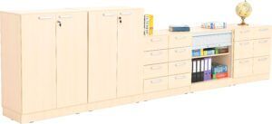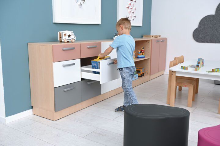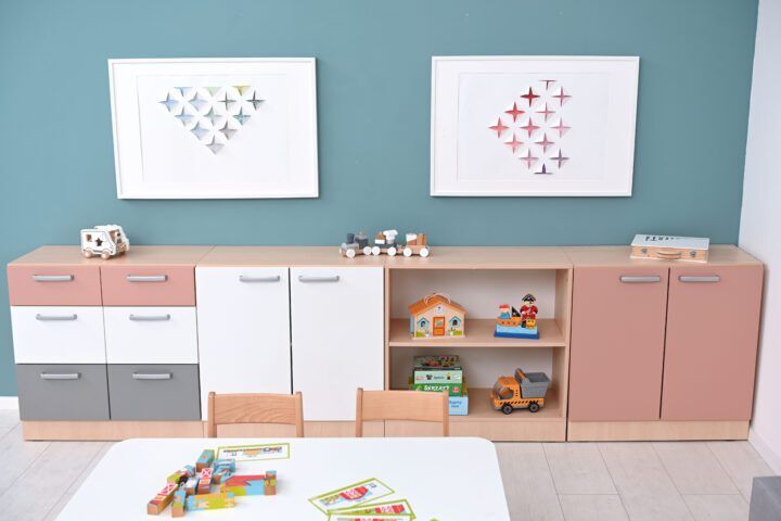 Een pronkstuk in de collectie, deze prachtige kastenwand in diverse moderne kleuren. Met zowel open als dichte opbergruimte bepaal jij in de klas, BSO of kinderdagverblijf wie waar bij mag. Bovendien is het een budgetvriendelijke optie die alleen wat inspanning vereist.