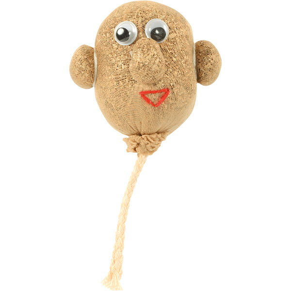Neem de graskop en maak het nat onder de kraan. Doe hem dan in een bak met water en zorg ervoor dat het touwtje water kan opnemen. Na een paar dagen zal je zien dat er gras uit de kop zal groeien. En dat gras moet natuurlijk ook geknipt worden!