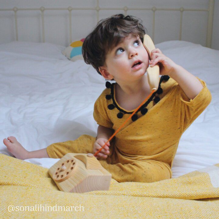 Geef de kinderen wat historisch besef mee met deze houten retro telefoon. Zullen ze het herkennen? Is mama nu aan de telefoon? Ook leuk als winkeltelefoon in de winkel.