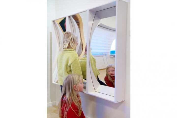 Deze Tivoli-spiegels bestaan uit 3 delen. Leuke spiegels met 3 verschillende functies. Hier kunnen kinderen zich prima vermaken door te zien hoe ze van vorm veranderen: kleiner, groter en breder.