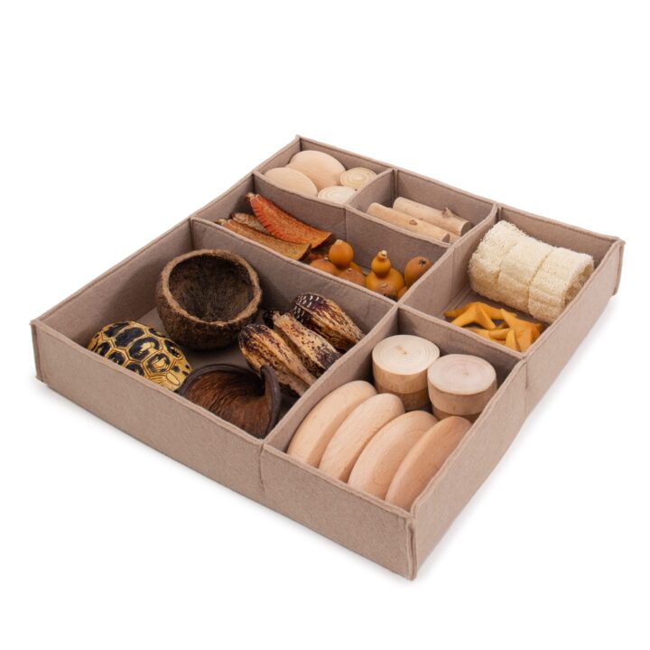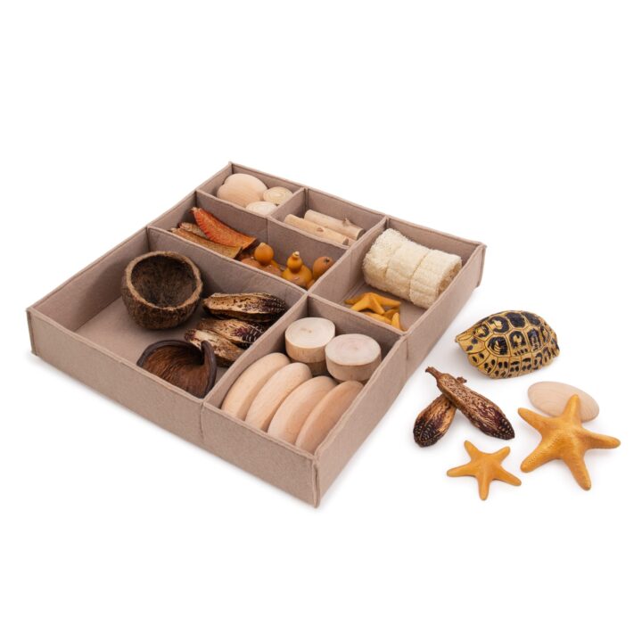 De ontdekkingsmogelijkheden worden vermenigvuldigd wanneer rijke variabelen binnen handbereik zijn. Deze set is uniek ontworpen om kinderen te inspireren om te experimenteren, te verkennen en tegelijkertijd zintuiglijke ervaringen en intrigerende nieuwsgierigheid naar natuurlijke materialen aan te moedigen.