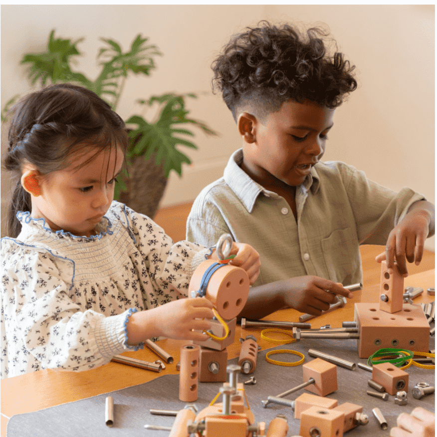- Open bouwpakket met losse onderdelen geeft kinderen de kans om te ontdekken, bouwen en creëren