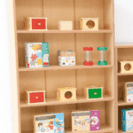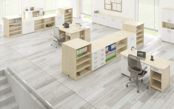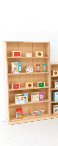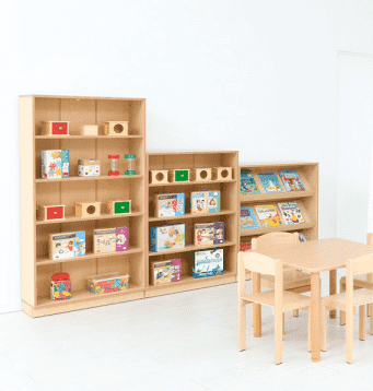 Een brede boekenkast van 18 mm spaanplaat. Het meubel heeft verstelbare planken die kunnen worden aangepast aan de hoogte van de items die erop worden geplaatst.