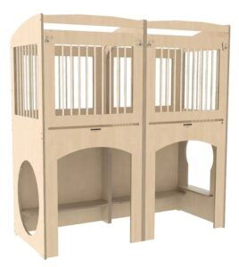 Verrijdbare enkele box met kantelhekje en spijlen. De sloten van het hekje zijn met 1 hand te bedienen