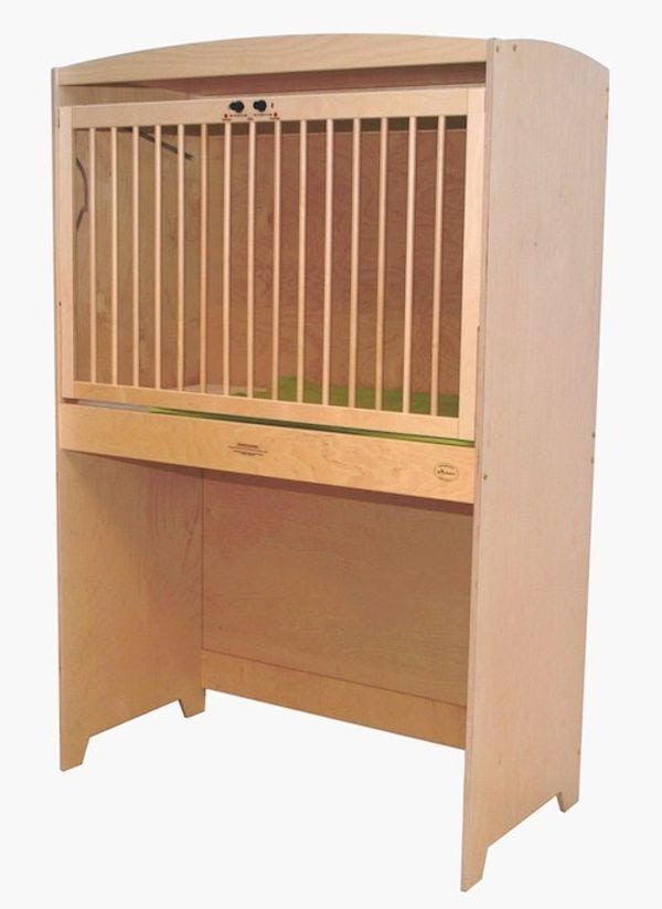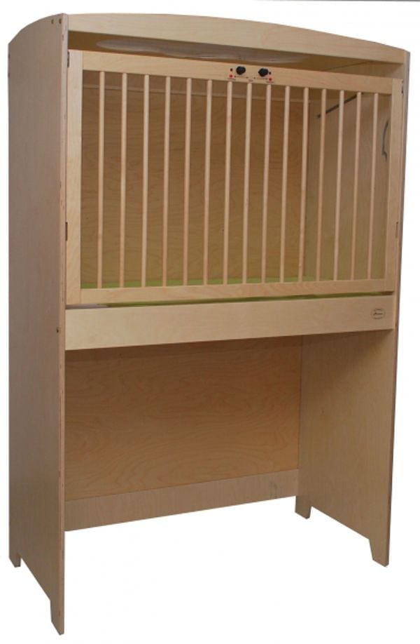 Onder de hoogslaper kan een evacuatiebedje (A900364) geplaatst worden. In een noodsituatie kunnen hier meerdere kinderen snel naar buiten in gereden worden.