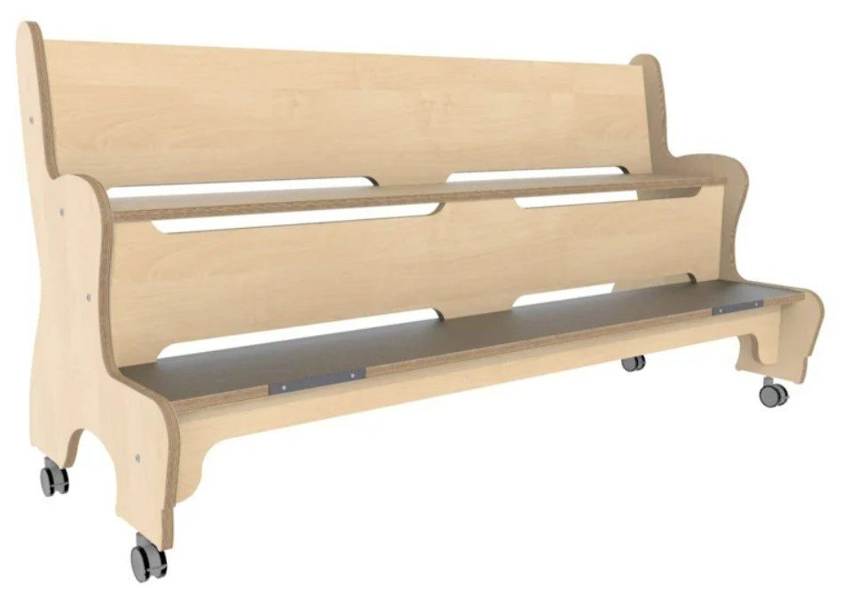 Hoogzit rechte ergo bank in berken voorzien van geremde wielen.