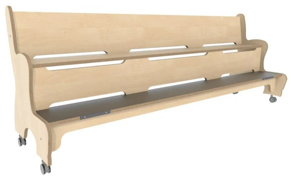 Hoogzit rechte ergo bank in berken voorzien van geremde wielen.