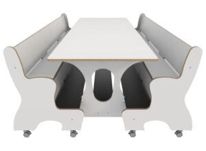 Combineer de banken met onze hoogzit ergo tafels of J tafels.