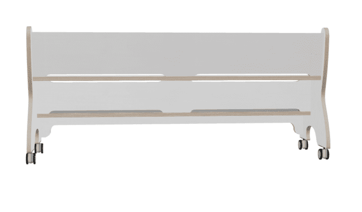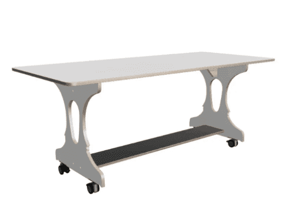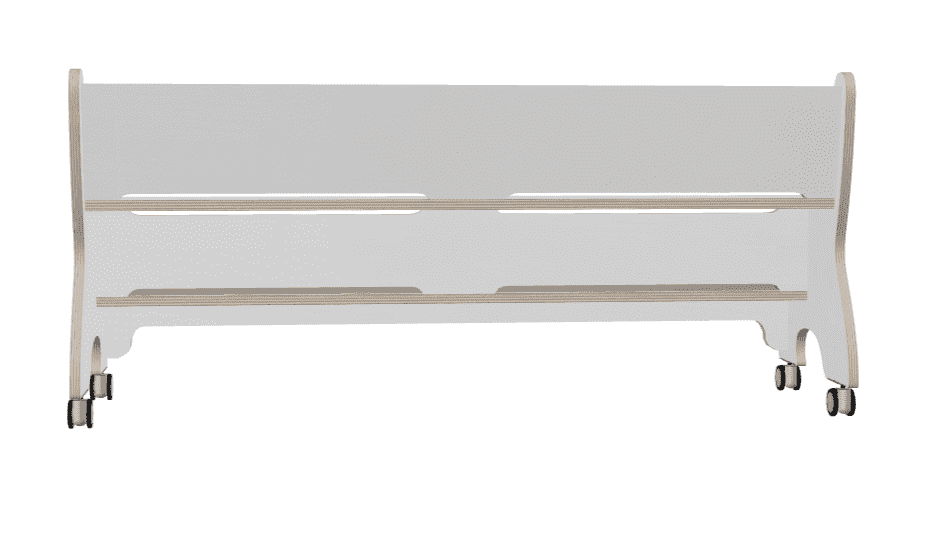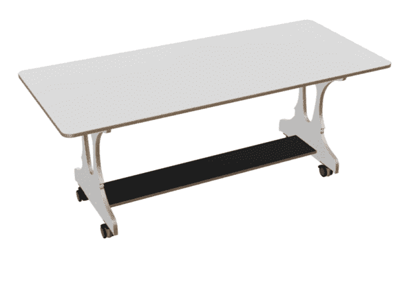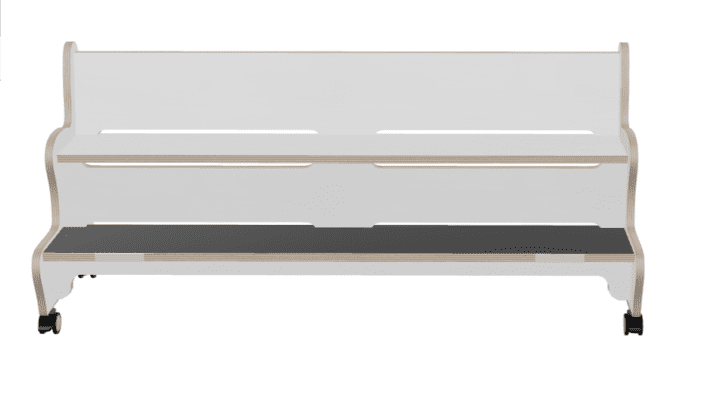 Hoogzit rechte ergo bank in wit voorzien van geremde wielen.
