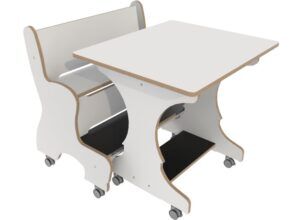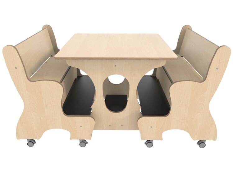 - Banken en tafel zijn opgebouwd uit 18 mm berken multiplex met standaard HPL toplaag, deze is zeer slijt en krasvast.