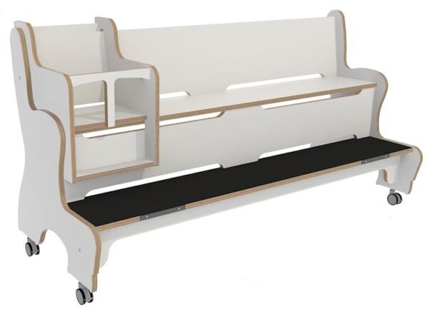 - Bank en tafel zijn opgebouwd uit 18 mm berken multiplex met standaard HPL toplaag, deze is zeer slijt en krasvast.