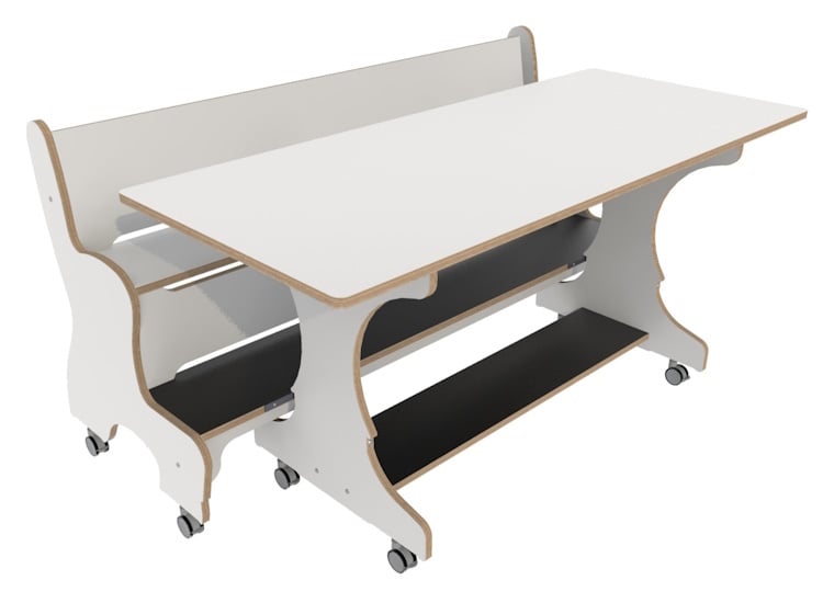 - Bank en tafel zijn opgebouwd uit 18 mm berken multiplex met standaard HPL toplaag, deze is zeer slijt en krasvast.