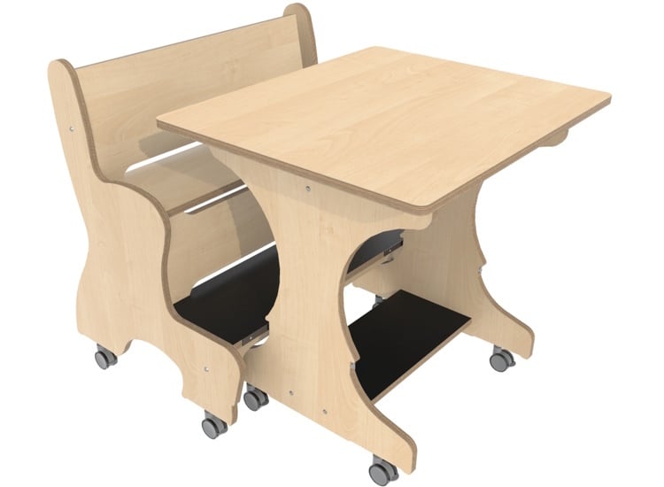 - Bank en tafel zijn opgebouwd uit 18 mm berken multiplex met standaard HPL toplaag, deze is zeer slijt en krasvast.