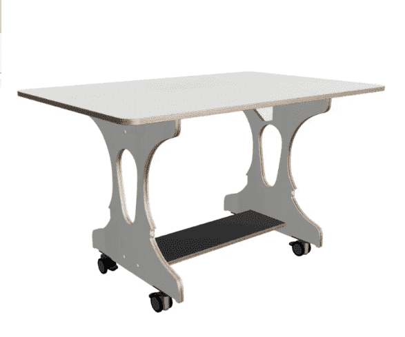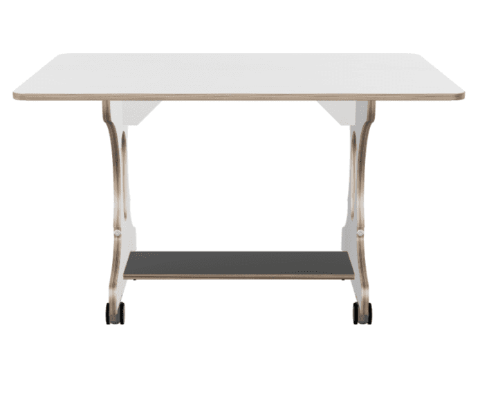 Allround hoogzit ergotafel met geremde wielen. Het tafelblad is voorzien van een krasvaste toplaag.